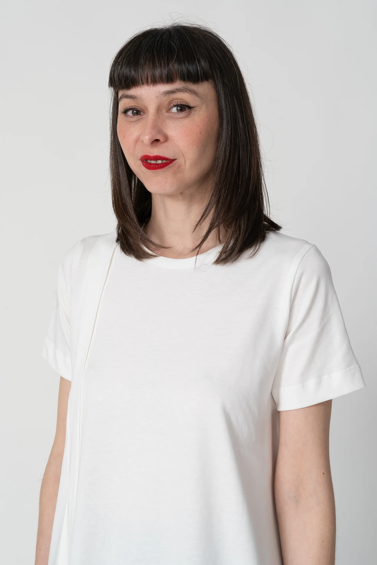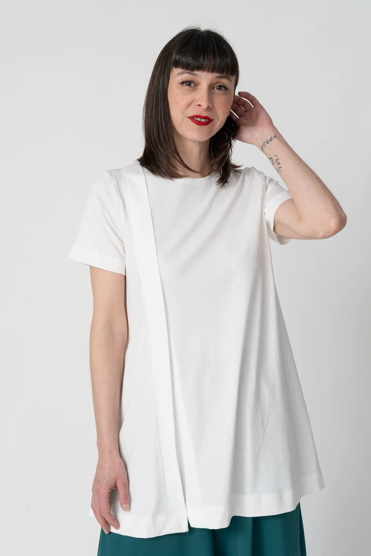 Camiseta de manga corta con abertura en el delantero. Muy agradable y cómoda de llevar.Diseñado por Elisa Muresan. Patronaje y confección a mano en Zaragoza en nuestro propio taller.