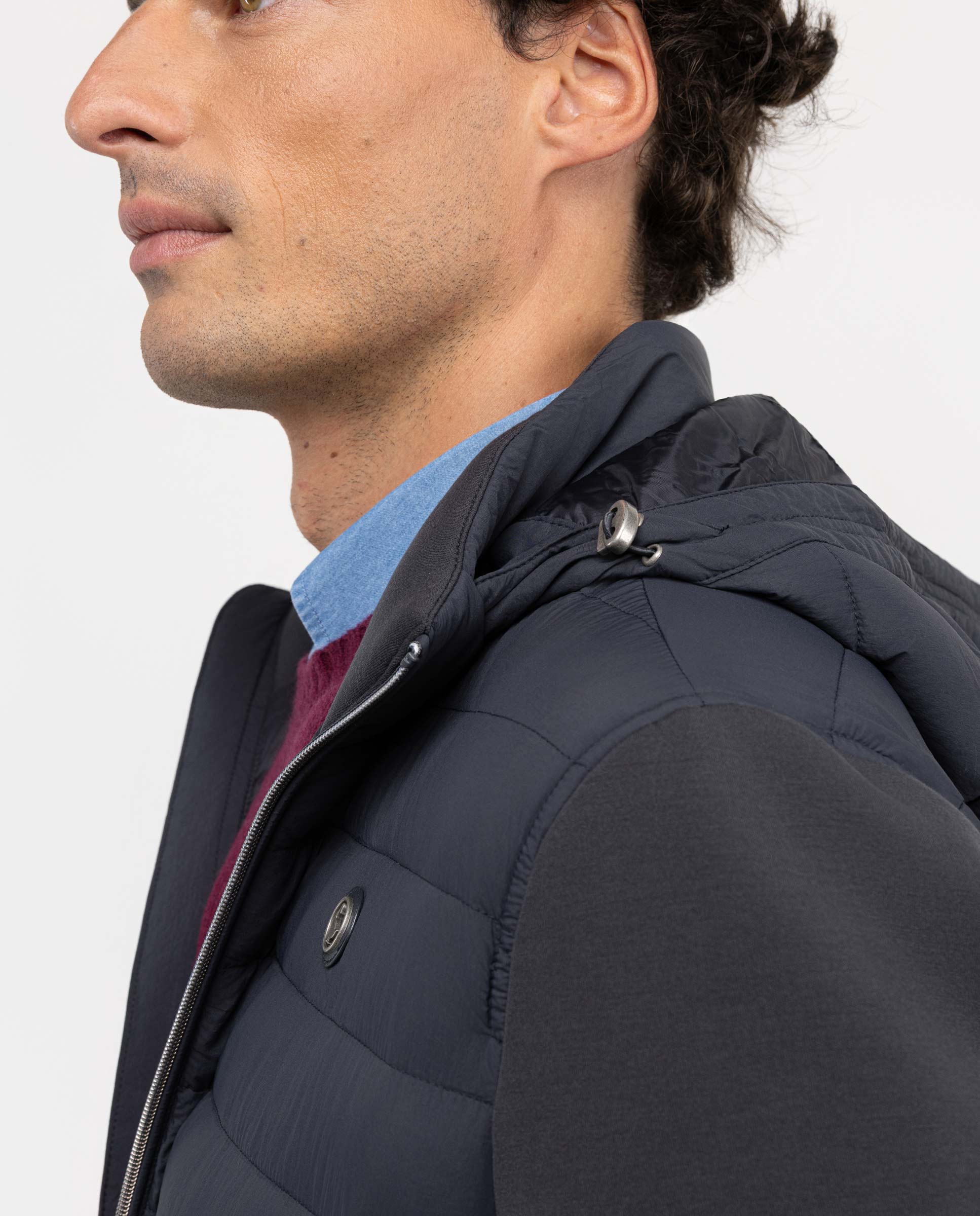 Chaqueta acolchada liso de hombre confeccionado en tejido de nylon reciclado y neopreno en capucha, mangas y bajo. Corte Slim Fit, cierre con cremallera y capucha. Lleva manga larga y bolsillos delanteros inclinados con corchete y bolsillo interior. Detalle de logo metálico en pecho. | REPREVE. En nuestro camino hacia ser una marca 100% sostenible hemos querido usar para el tejido interior, una fibra de alto rendimiento y de última generación, fabricada con todo tipo de materiales reciclados, incluidas las botellas de plástico. Hasta ahora, la empresa ha conseguido reciclar más de 31.000 millones de botellas de plástico y el contador sigue subiendo cada segundo. |