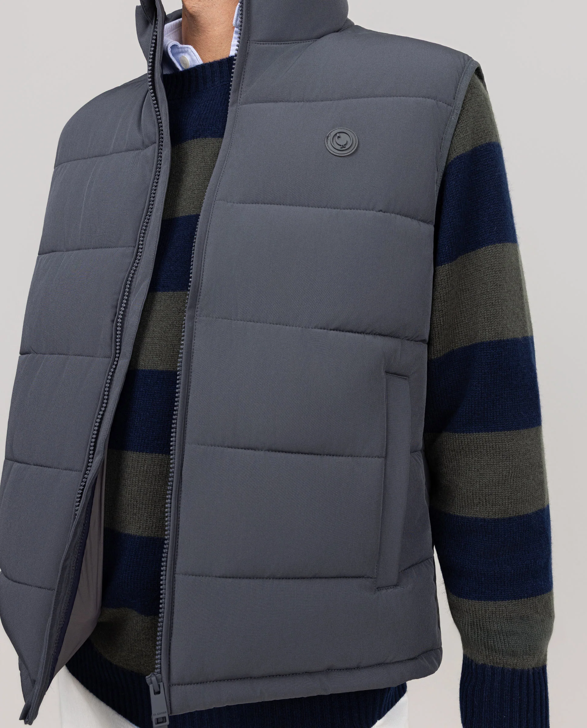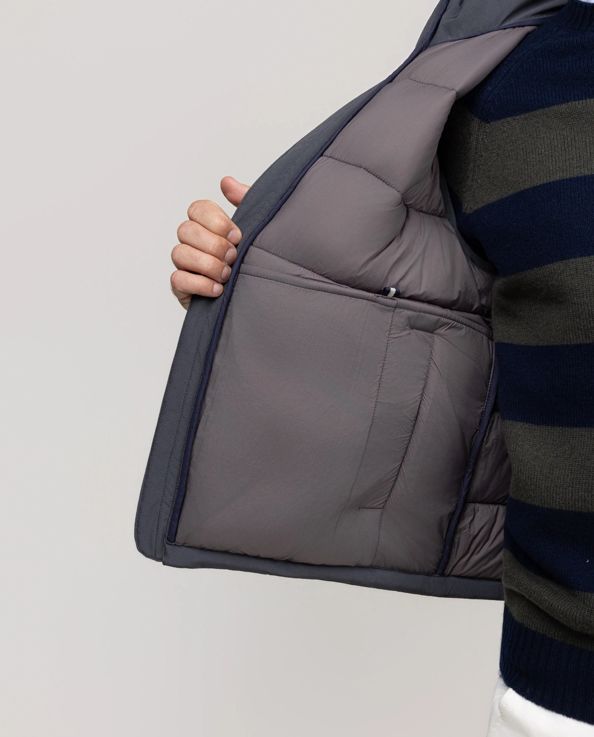 Chaleco de hombre grueso acolchado con repreve (Botellas de plástico recicladas) cuenta con cremallera en el frontal.