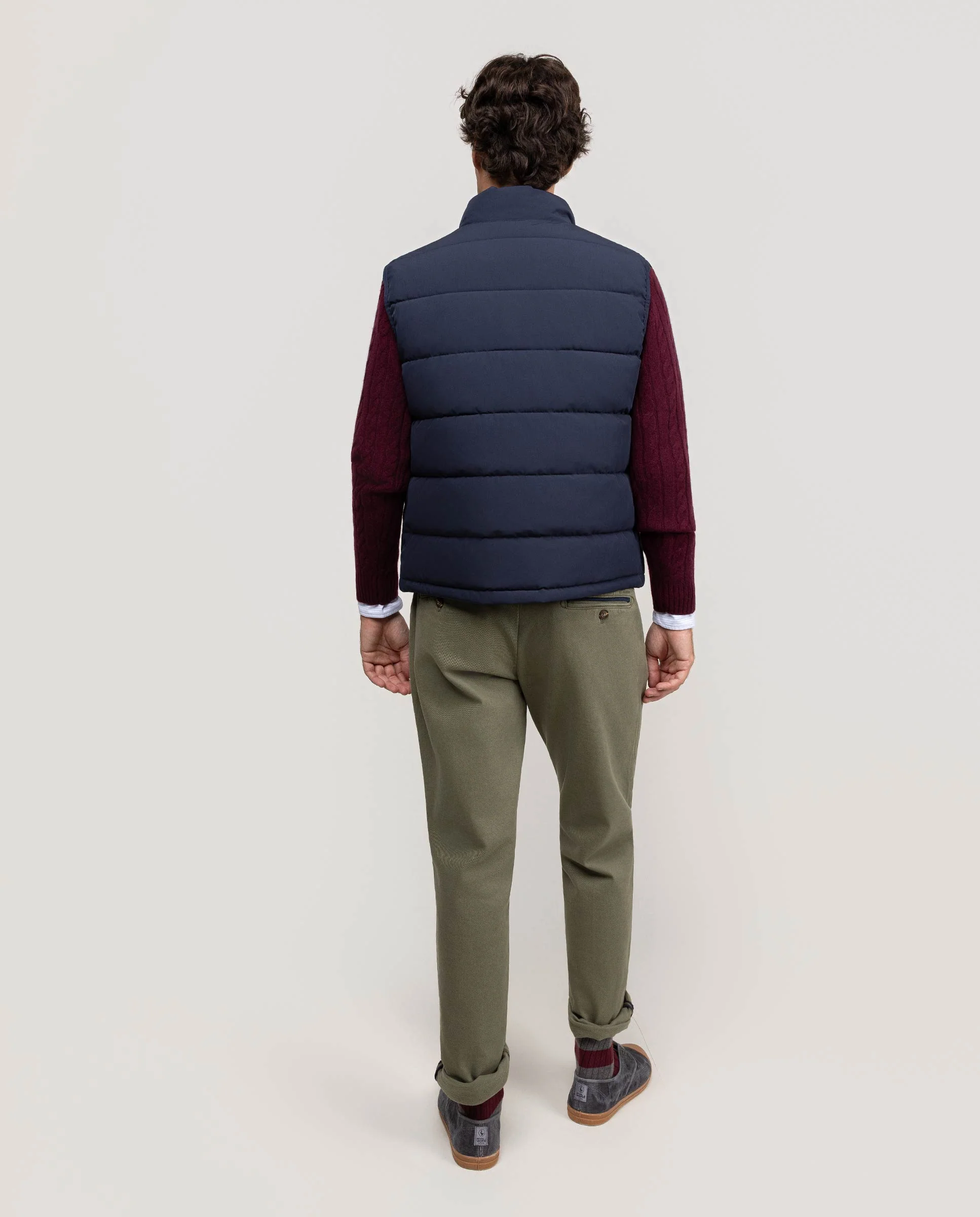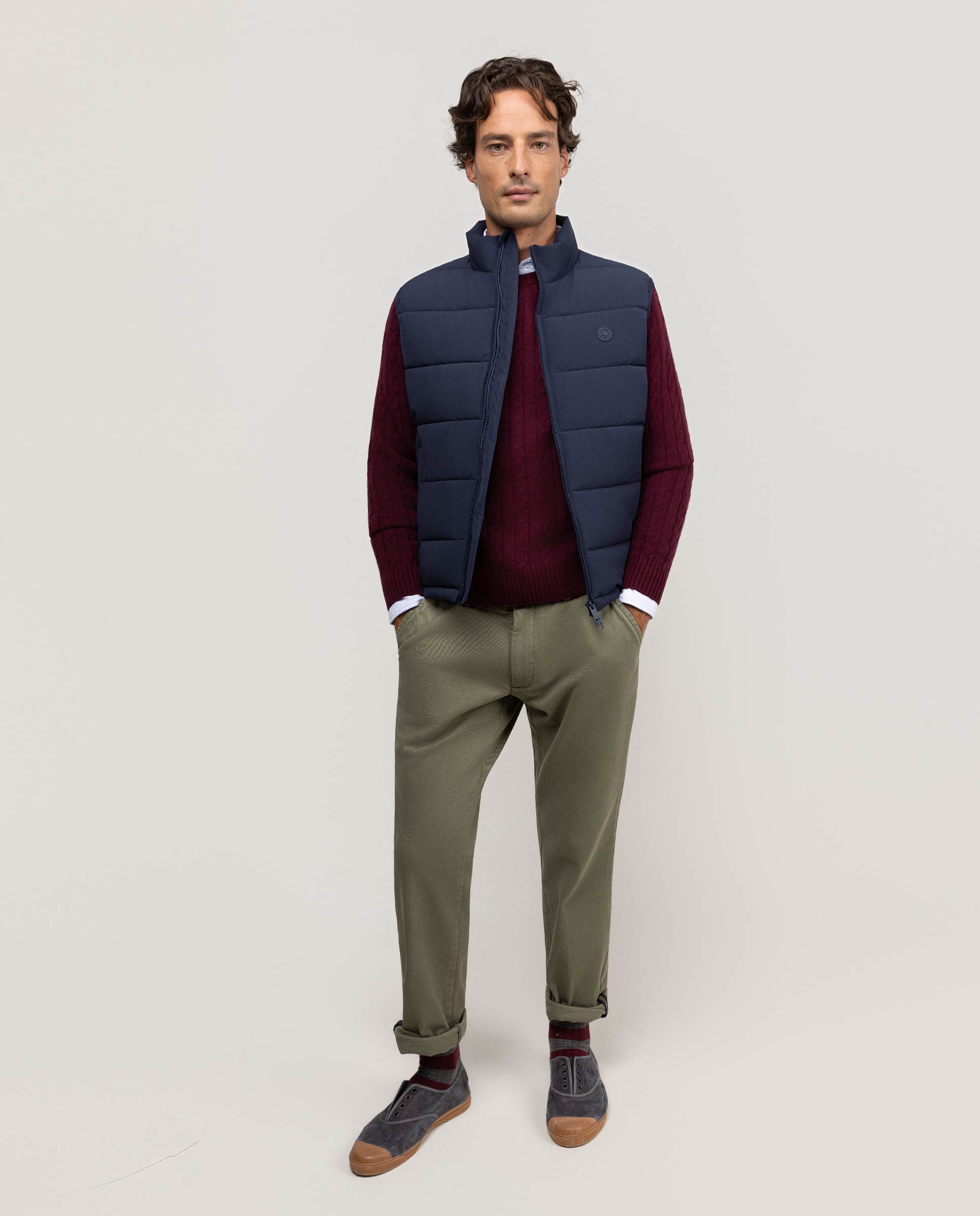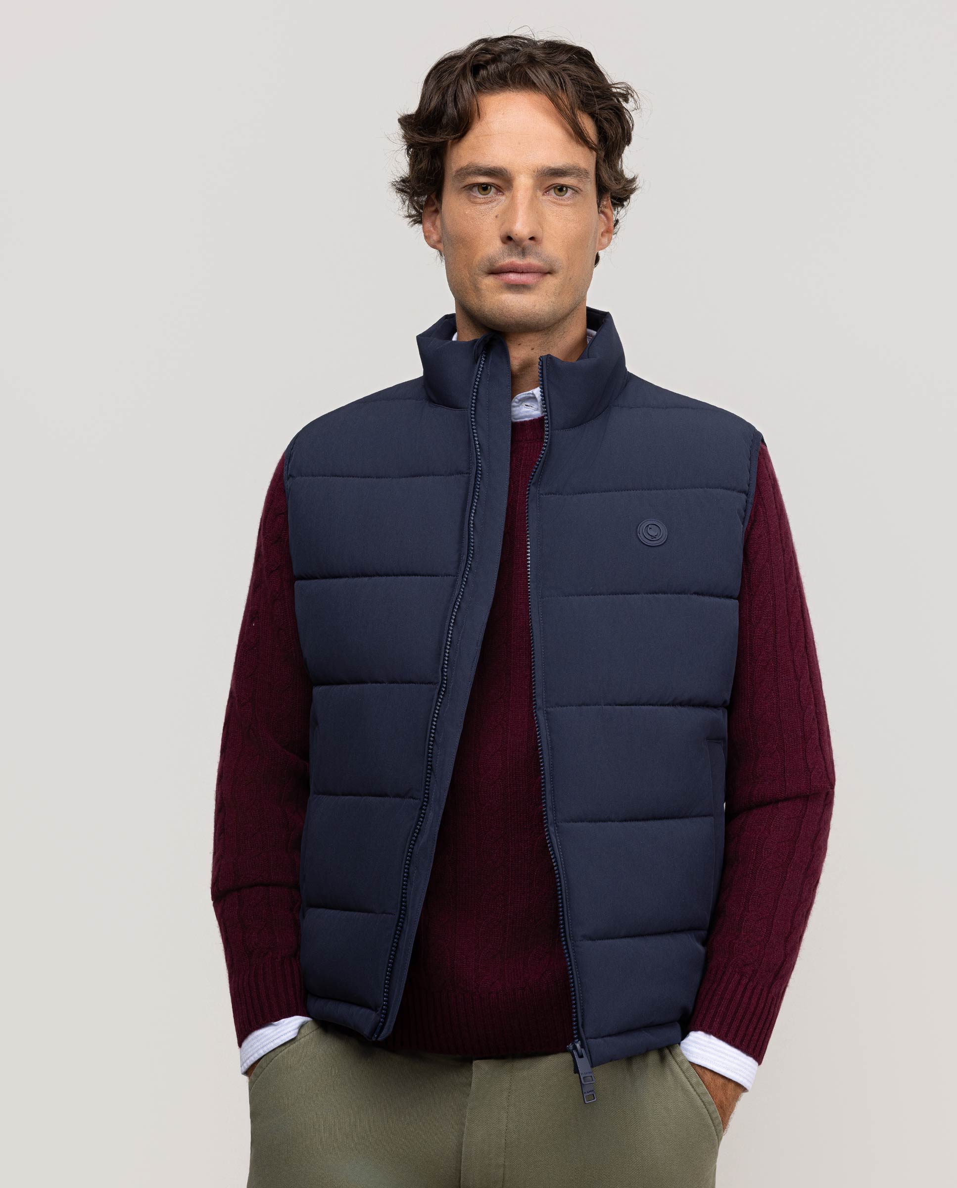 Chaleco de hombre grueso acolchado con repreve (Botellas de plástico recicladas) cuenta con cremallera en el frontal.