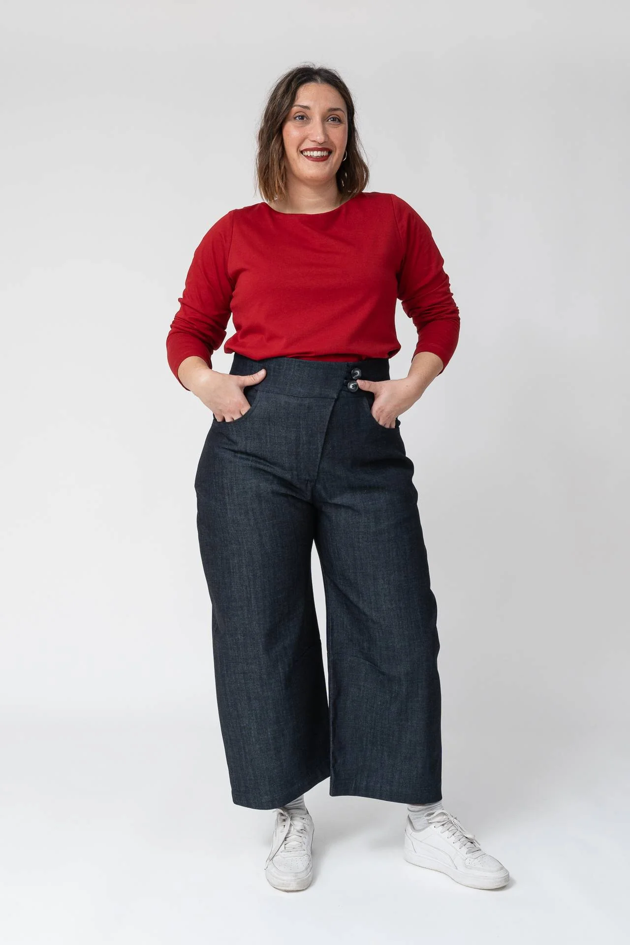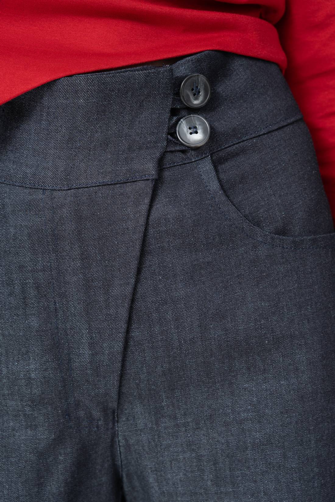 Denim globo con pinza y bolsillos delantero y trasero. Muy agradable y cómodo de llevar. Diseñado por Elisa Muresan. Patronaje y confección a mano en Zaragoza en nuestro propio taller.