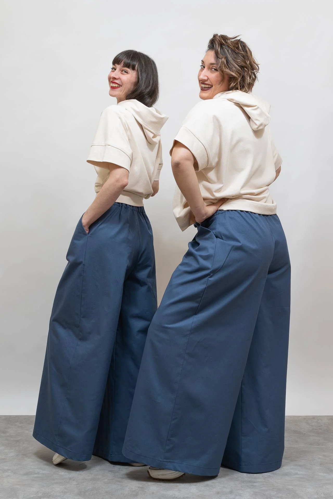 Falda pantalón con bolsillo lateral diagonal, pala en el delantero y cintura de goma en la parte de atrás. Se cierra con botón. Muy agradable y cómodo de llevar.Diseñado por Elisa Muresan. Patronaje y confección a mano en Zaragoza en nuestro propio taller.