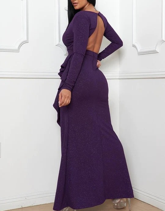 Manga larga escote en v cruzado detalle escarolas cintura brillos