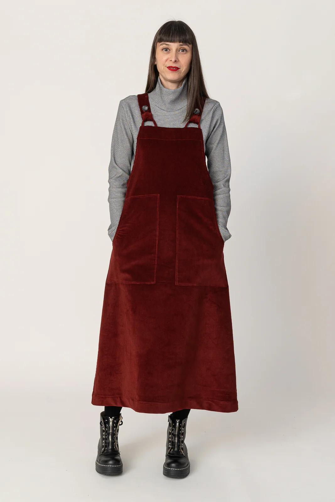 Vestido pichi evase de tirantes con cierre de botón y bolsillos parche. Muy agradable y cómodo de llevar. Diseñado por Elisa Muresan. Patronaje y confección a mano en Zaragoza en nuestro propio taller.
