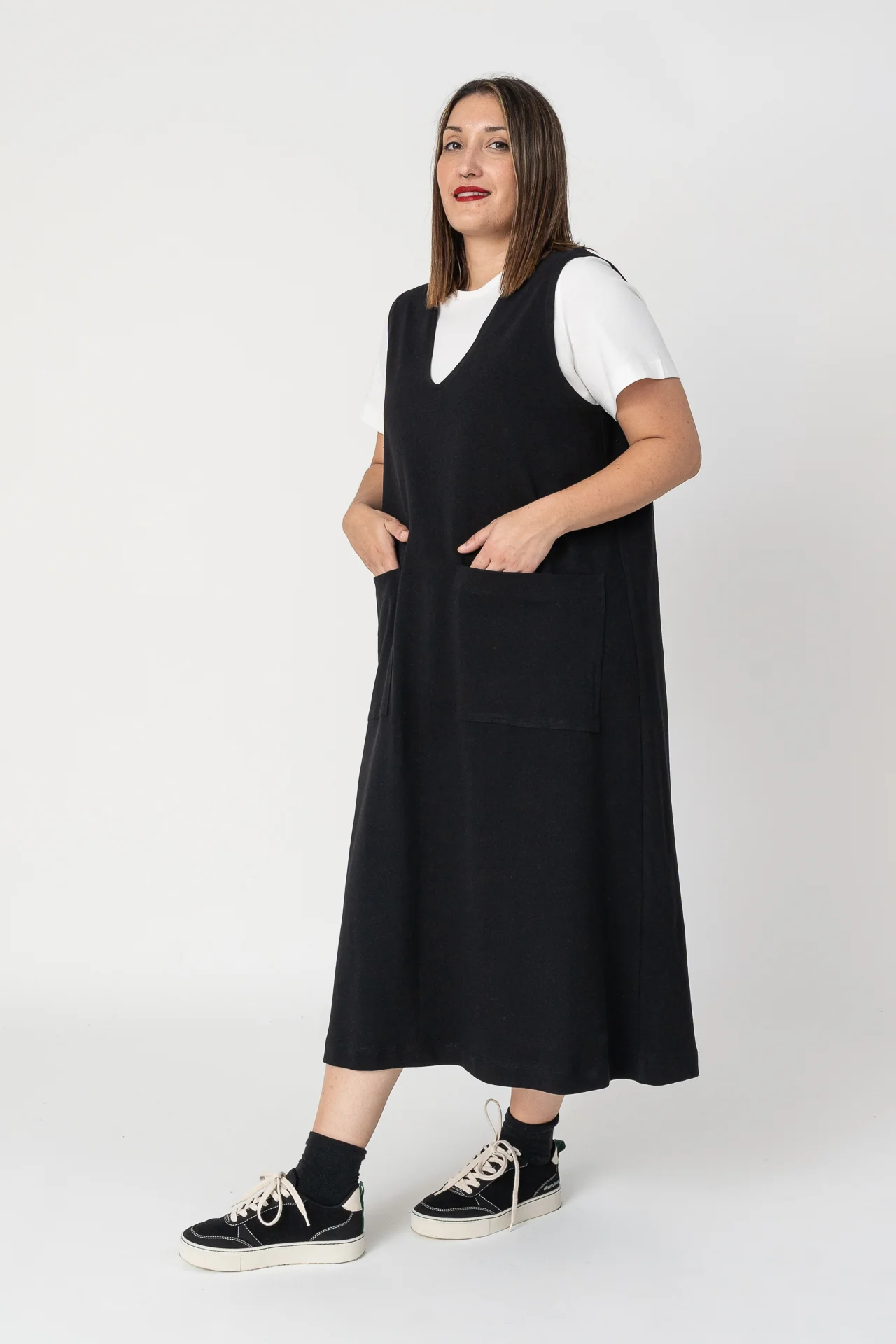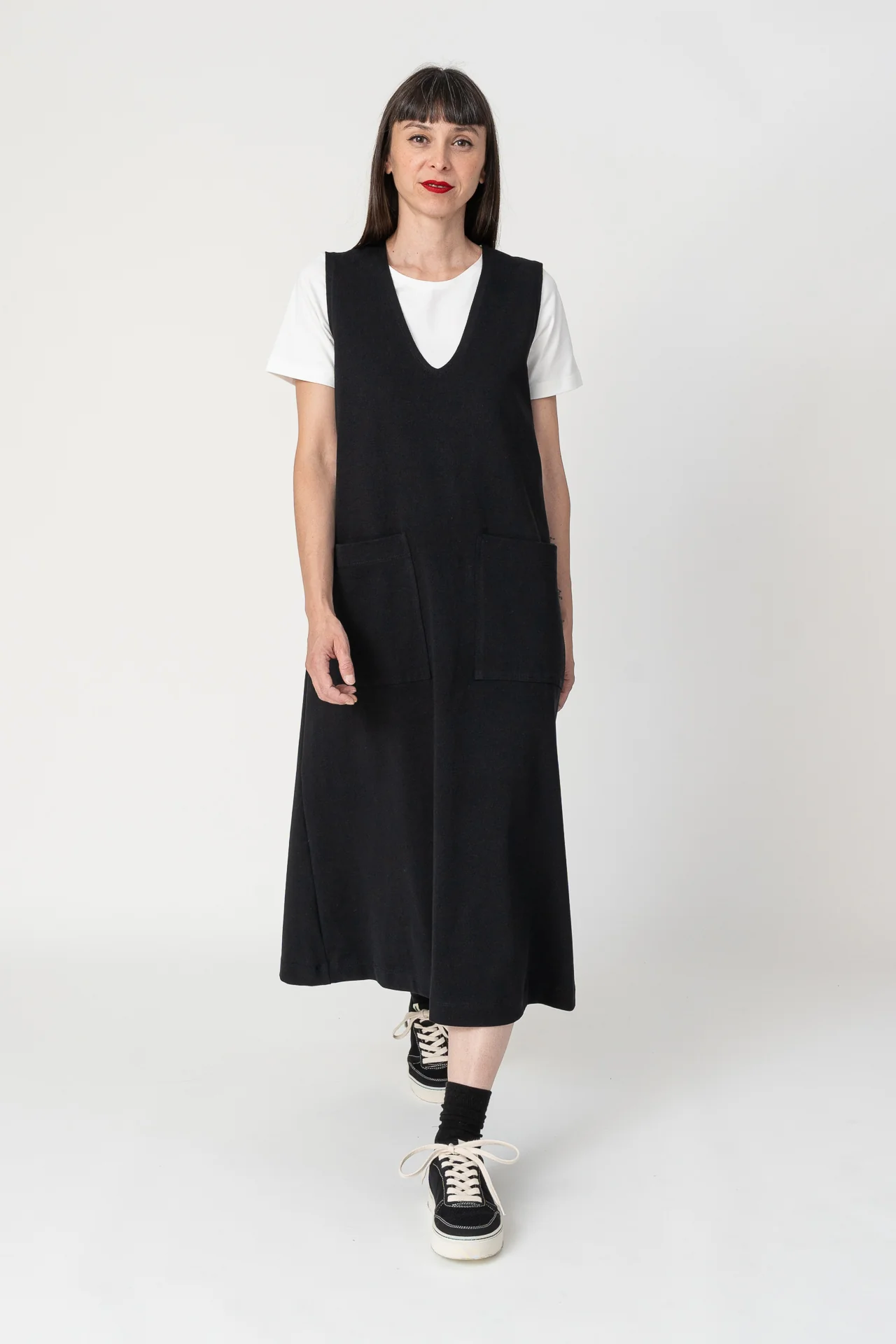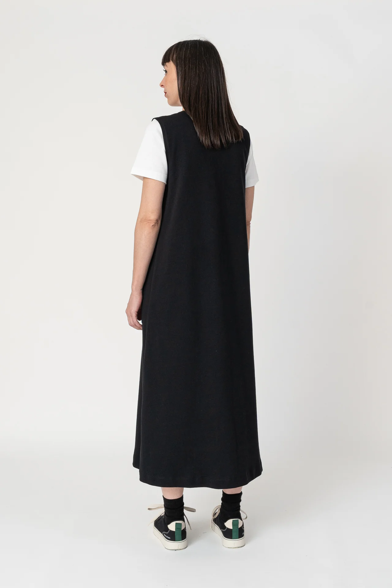 Vestido largo de tirante, tipo evasé y con escote en pico. Muy agradable y cómodo de llevar. Diseñado por Elisa Muresan. Patronaje y confección a mano en Zaragoza en nuestro propio taller.