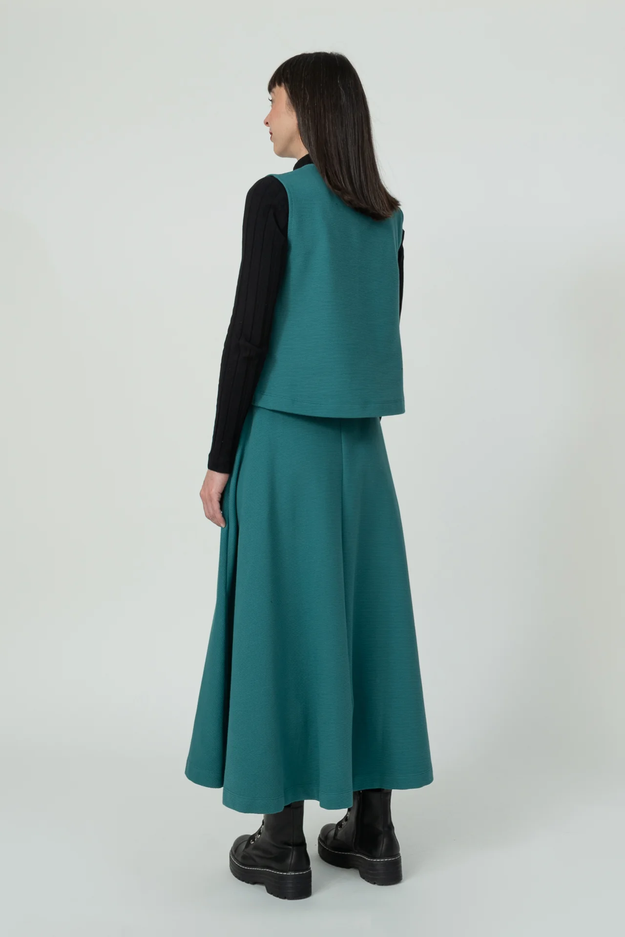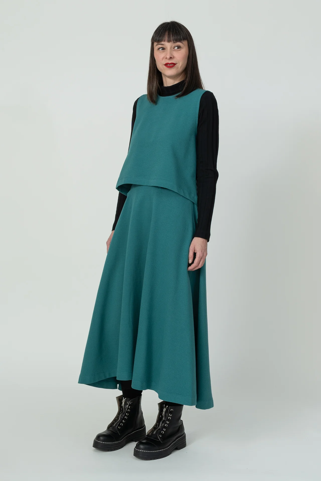 Top evase de cuello caja. Muy agradable y cómodo de llevar. Diseñado por Elisa Muresan. Patronaje y confección a mano en Zaragoza en nuestro propio taller.