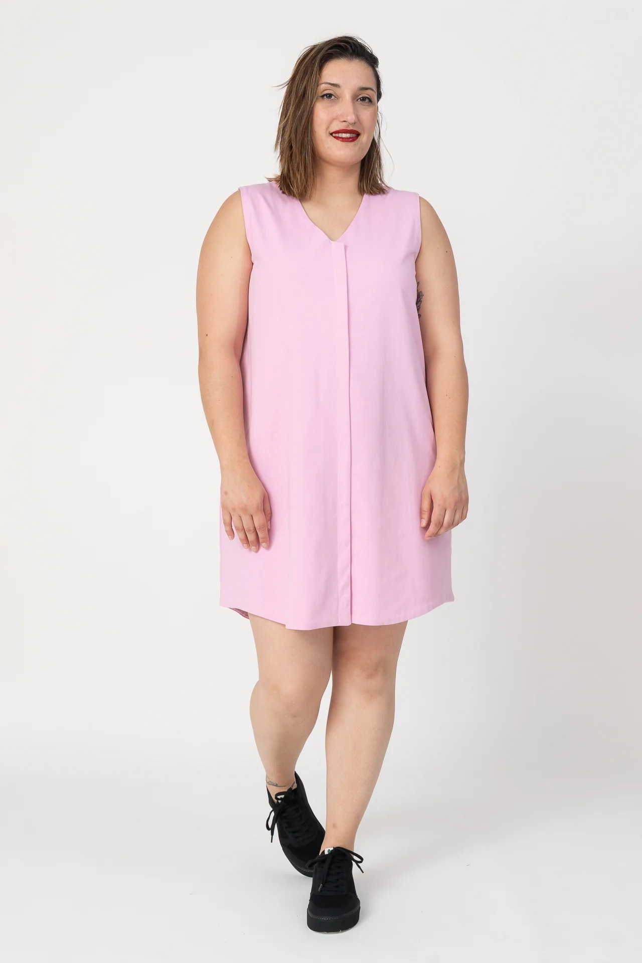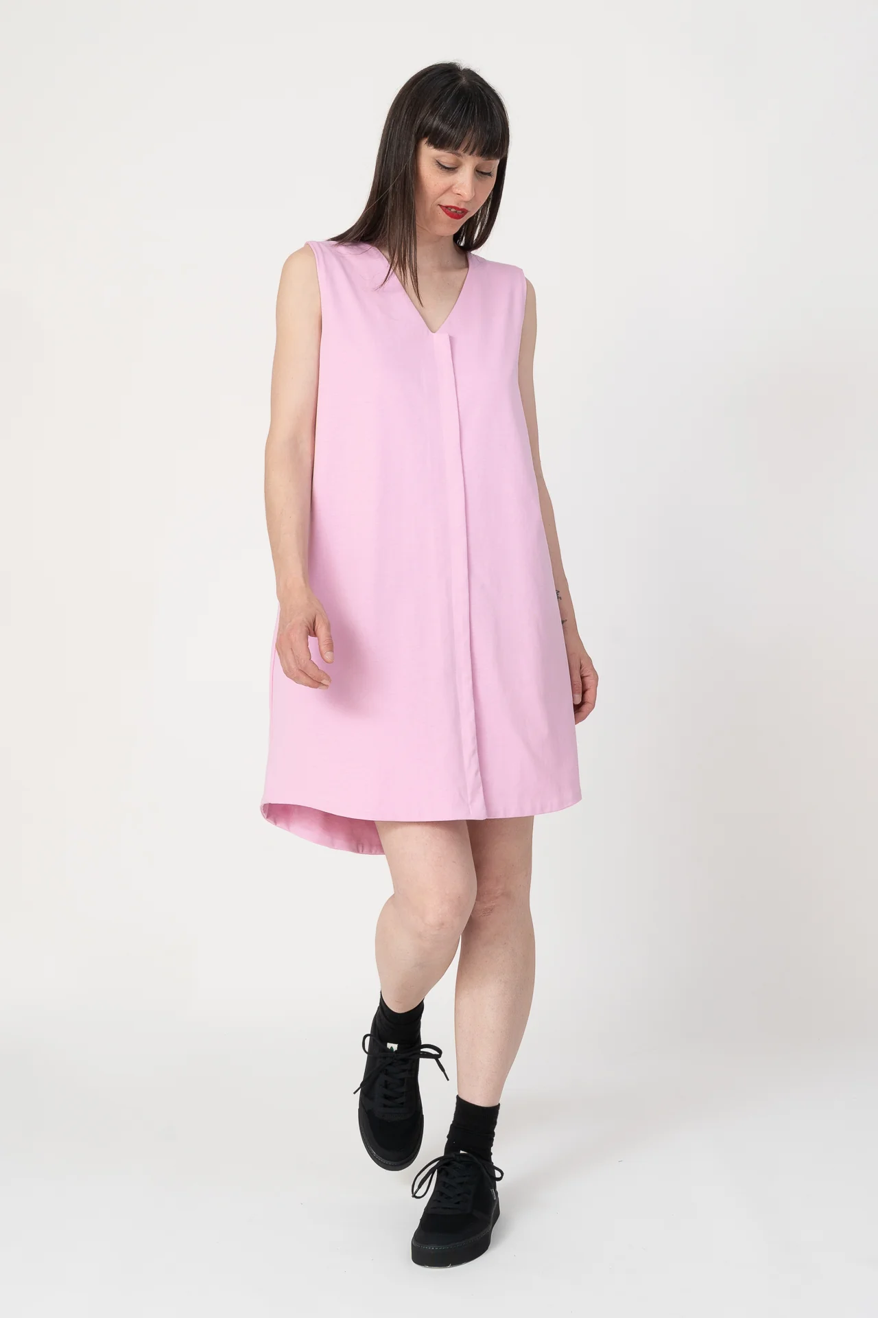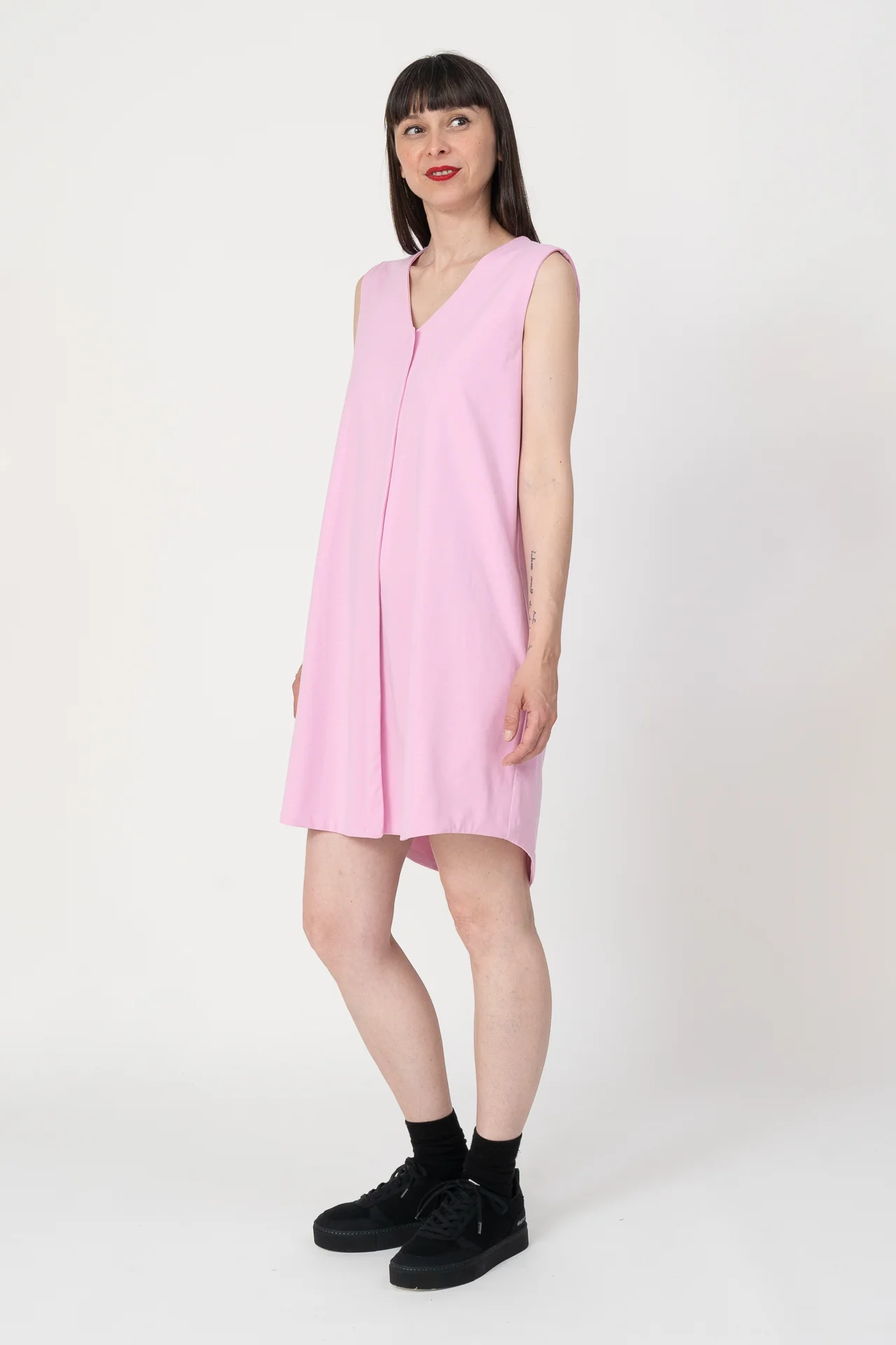 Vestido chaleco over sin mangas. Muy agradable y cómodo de llevar. Diseñado por Elisa Muresan. Patronaje y confección a mano en Zaragoza en nuestro propio taller.