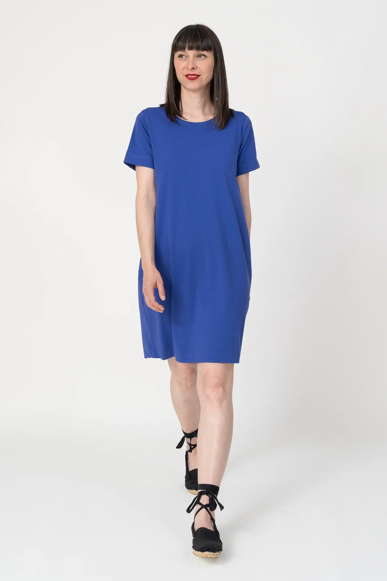 Vestido tipo globo de manga corta y con bolsillo en la costura. Muy agradable y cómodo de llevar. Diseñado por Elisa Muresan. Patronaje y confección a mano en Zaragoza en nuestro propio taller.